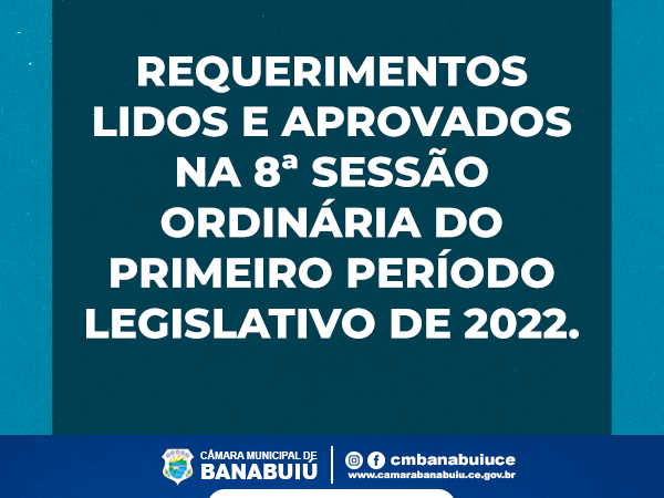 Acesse nossas redes sociais e confira. Posted on 24 de março, 2022 | by Gabriel Martins | Leave a Comment on Acesse nossas redes sociais e confira. Acesse nossas redes sociais e confira os requerimentos lidos e aprovados na 8ª Sessão Ordinária do Primeiro Período Legislativo, que foi realizada no dia 24 de março 2022.