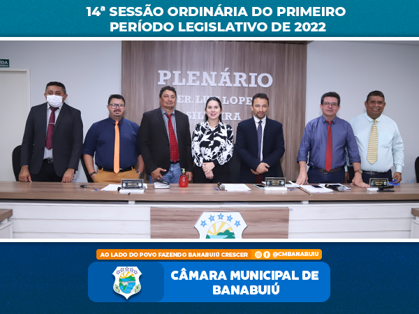 Hoje (12), quinta-feira, às 10 horas, teremos a nossa 14ª Sessão Ordinária do Primeiro Período Legislativo de 2022.