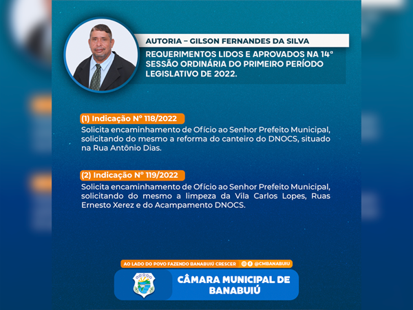 Posted on 12 de maio, 2022 | by Gabriel Martins | Leave a Comment on 14ª SESSÃO ORDINÁRIA
