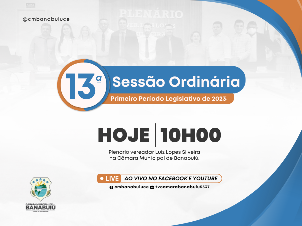 13º SESSÃO ORDINÁRIA DA CÂMARA MUNICIPAL DE BANABUIÚ – CE. Posted on 27 de abril, 2023 | by Gabriel Martins | Leave a Comment on 13º SESSÃO ORDINÁRIA DA CÂMARA MUNICIPAL DE BANABUIÚ – CE. CONVIDAMOS TODA A POPULAÇÃO BANABUIENSE PARA SE FAZER PRESENTE HOJE AS 10:00 NO PLENÁRIO DA CÂMARA MUNICIPAL DE BANABUIÚ