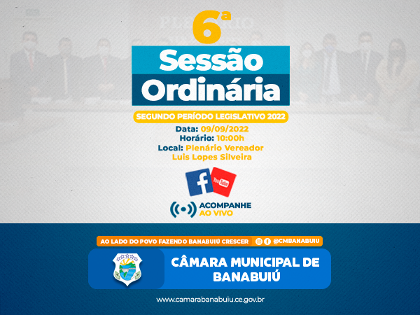 Hoje, às 10 horas, teremos a nossa 6ª Sessão Ordinária do Segundo Período Legislativo de 2022.