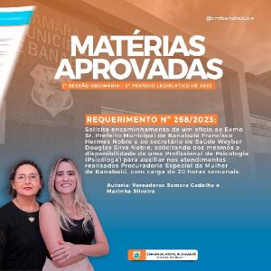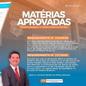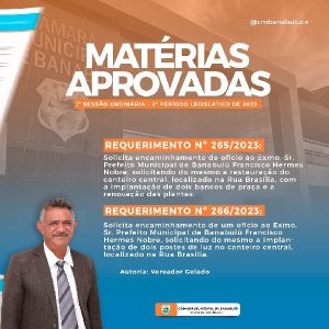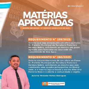 Matérias aprovadas na 1ª Sessão Ordinária do Segundo Período Legislativo de 2023 da Câmara Municipal de Banabuiú.