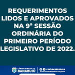 | Confira as fotos da 9ª Sessão Ordinária do 1º Período Legislativo de 2022. | ![]() | Ver |