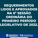 | Confira as fotos da 6ª Sessão Ordinária do 1º Período Legislativo de 2022. | ![]() | Ver |
