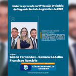 | MATÉRIAS APROVADAS NA 17ª SESSÃO ORDINÁRIA DO SEGUNDO PERÍODO LEGISLATIVO DE 2022. | ![]() | Ver |